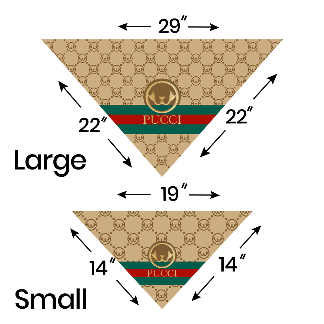Finding the right size for your pet is crucial for comfort and style. The Pucci Bandana comes in various sizes to fit dogs of all breeds and sizes. With adjustable features, it ensures a snug yet comfortable fit, preventing any discomfort during wear. Whether you have a small Chihuahua or a large Golden Retriever, there's a perfect fit waiting for your furry friend. Enjoy peace of mind knowing that the bandana will stay in place during all of your pet’s adventures.